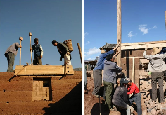 夯土是用干打垒分层夯实土层的一种需要众多劳动力的高强度体力劳动;
